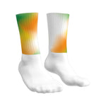 Calzino per ciclismo di design realizzato in due diversi materiali per il massimo comfort e prestazione aerodinamica. Il tessuto del gambale/polsino è in poliestere graficato, strutturato per favorire la canalizzazione dell’aria e rimanere in posizione per tutta la tua performance. La parte del piede è in morbido cotone e sostiene l’arco plantare assicurando traspirabilità senza surriscaldare il piede.